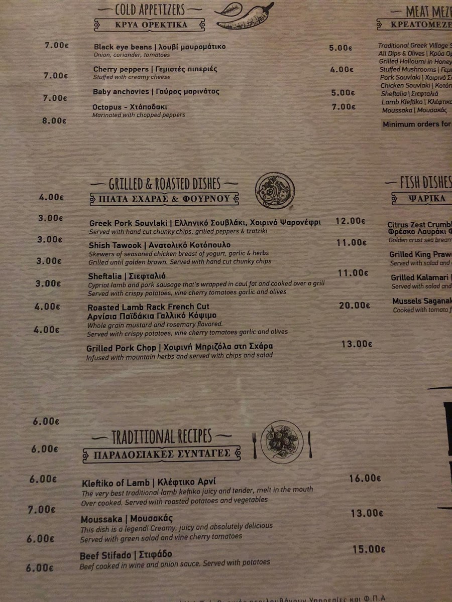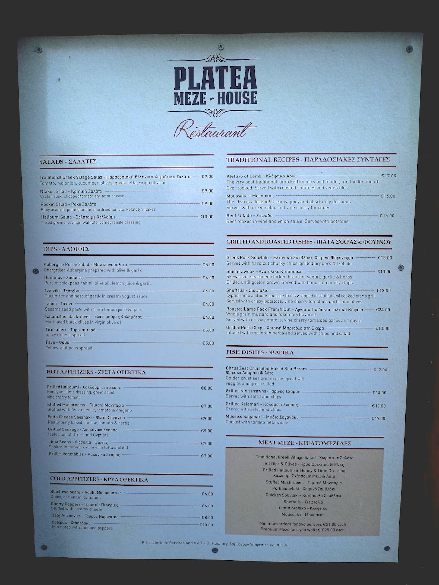 Platea offers a thoughtfully curated menu that reflects the relaxed and welcoming spirit of a coastal Cypriot dining spot. The selection is centered around traditional meze-style dishes that invite sharing and savoring over good conversation, making it an ideal choice for leisurely lunches or casual dinners with friends and family.